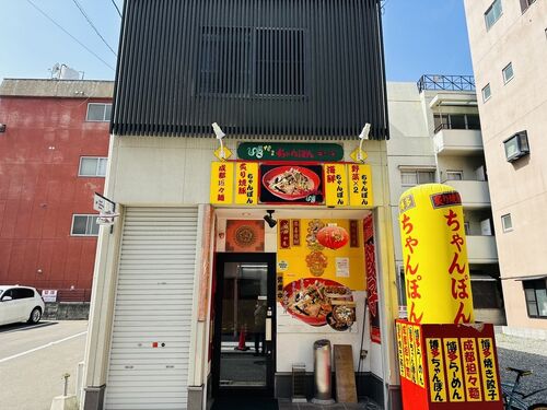 博多ちゃんぽんえいと☆福岡市中央区六本松2-5-15エリア〜地下鉄「六本松駅」徒歩約3分!の通りから入った所に位置します。コチラは中華料理経験者の店主が2016年6月オープン!外観は中華街では一般的な赤と黄色の派手なファザード!店内はカウンター席とテー…