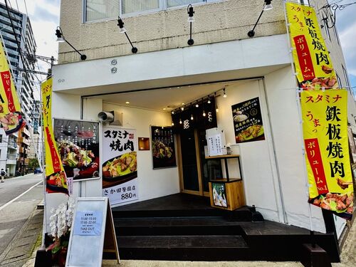 スタミナ鉄板焼肉さか田☆ 福岡市中央区警固2-12-19エリア〜地下鉄「赤坂駅」徒歩12分!くらいの位置にあります。 コチラは「踊る肉だんご」の業態変更として2024年3月オープン!現在は建物自体の取り壊しにより閉店!入居する建物自体が解体取り壊しとなるよ…