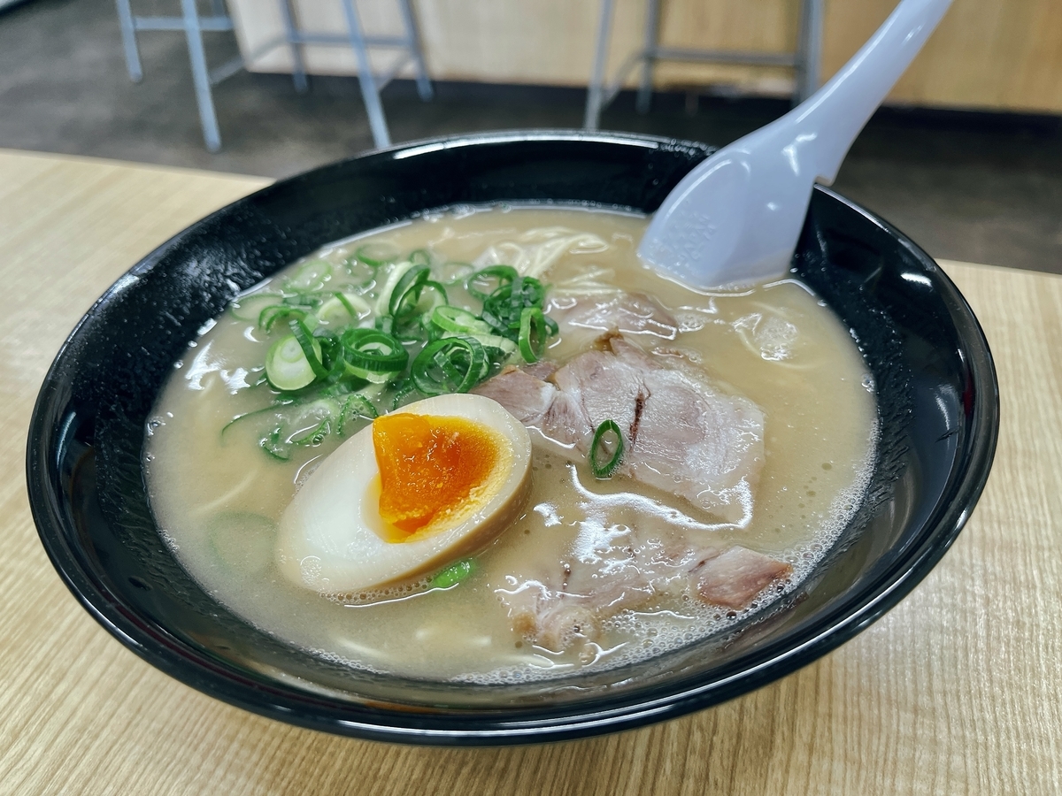 この長浜エリアは「長浜ラーメン」の聖地!値段も格安なワンコインラーメンが食せるとあって福岡市民の胃袋を満たしたり!長浜ラーメンの歴史遺産を食したい観光客には人気なゾーン〜コチラ「ナンバーワン」はその中でもしっかりと濃く旨い「豚骨スープ」を炊き上げるお店としてはこのエリアではトップクラスの美味しいラーメン店!コロナ禍でどこも時短営業〜ランチタイムに訪れましたがやはりお客様は少ない!今月末まではこのような状態が続くんでしょう〜頂いたのは定番「煮玉子ラーメン」「餃子」です。