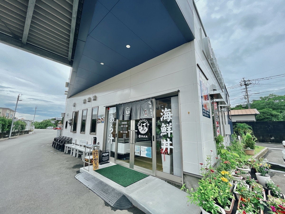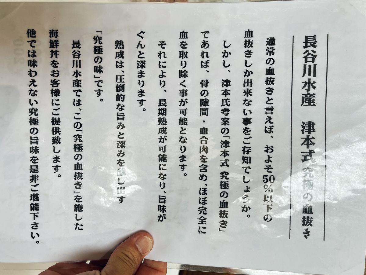 外観は長谷川水産入口に設けられた店舗!店内はカウンター席とテーブル席とあり!お昼時は行列ができるので開店と同時に入店です〜昨今「海鮮丼」が人気急上昇ですが・・・ココの海鮮丼に仕様されている魚は他店で使用されている魚と違って完璧に血抜き(津本式)され「熟成」された「熟成魚」です。
