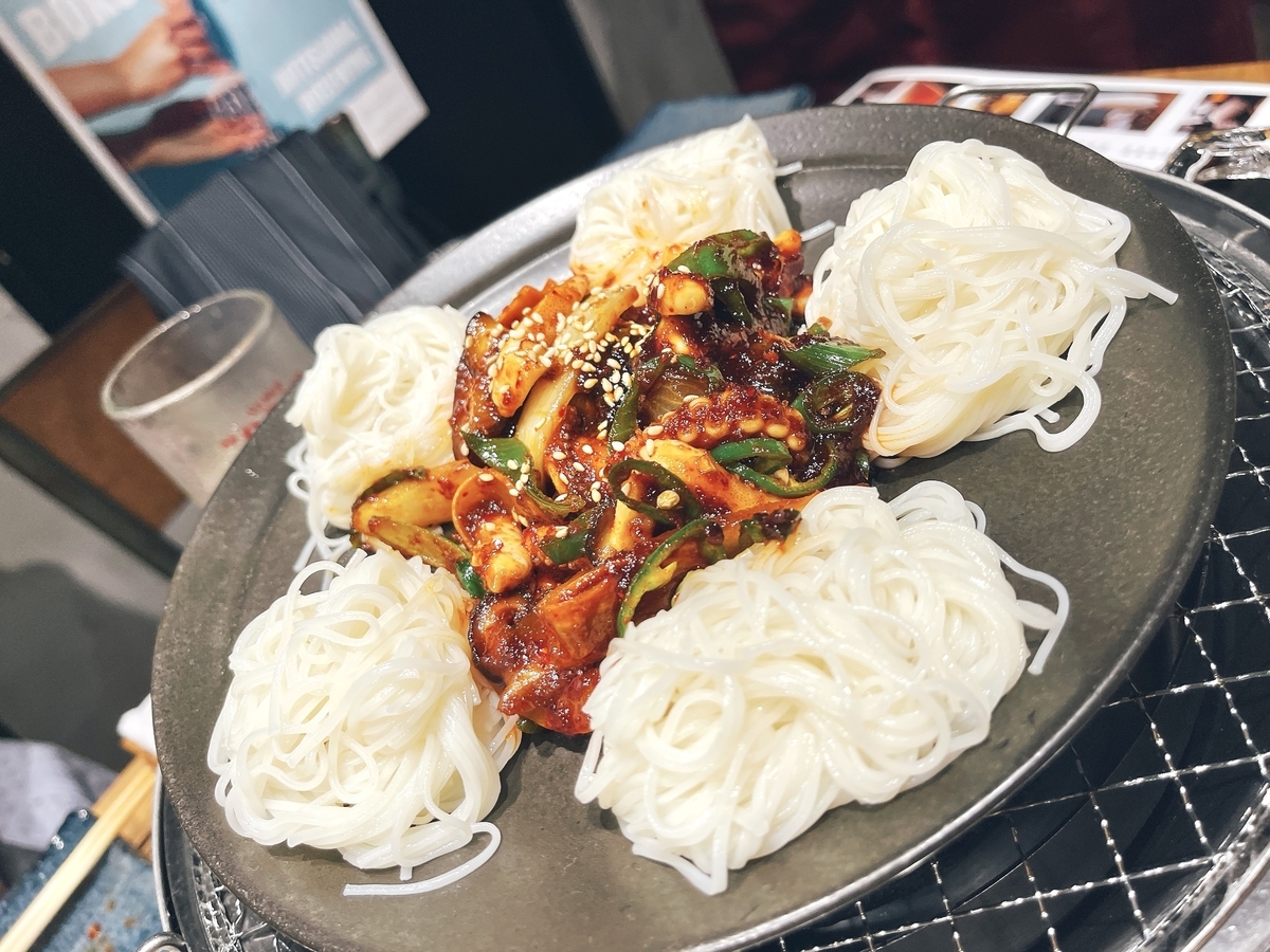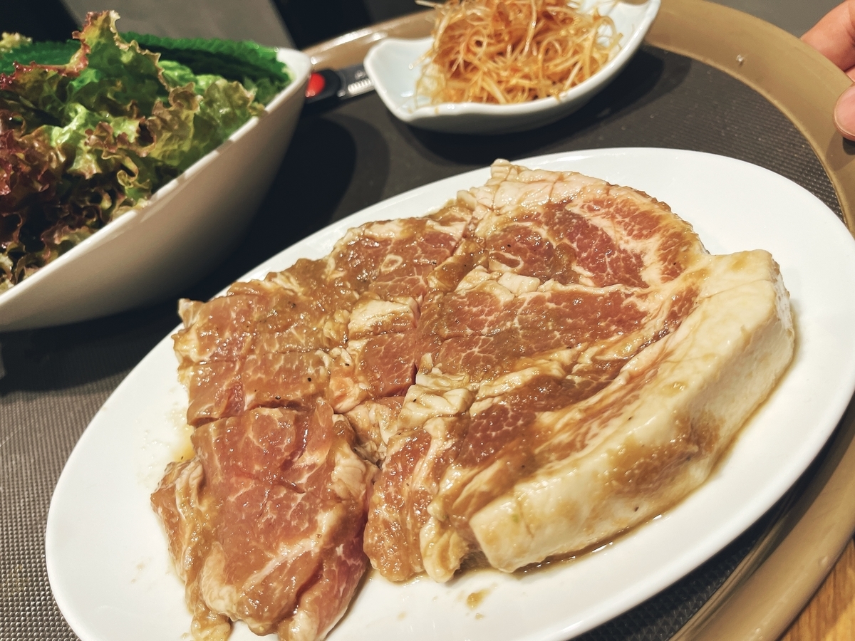 焼肉は「和牛上タン塩」「MUGENハラミ」「骨付きカルビ」「サムギョプサル」どれもハズレなし!オススメは「骨付きカルビ」です☆漬け込み熟成された「カルビ」は単身でも美味しいけど・・・サンチュや胡麻の葉に巻いて食すのが最高です!外せないのが「サムギョプサル」〜使用する豚肉は「糸島産豚バラ肉」で肉厚と「骨付きカルビ」とツートップな美味しさは食べんとわからんよ〜まだ気軽に韓国に行けないので韓流好きは試してみてはどうでしょう。
