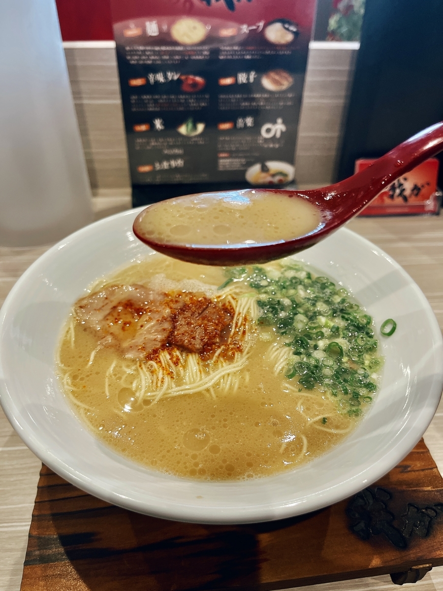 豚骨スープはあっさりシャバシャバ系で臭みなどないクリーミーな仕上げ!甘めのかえし醤油に辛味タレがこの系統の真骨頂!なので好み分かれる一杯です〜ただ言えることは、一蘭はこの系統の味で日本全国は元より世界に進出して人気を馳せているというのは想像を超える意外性だったなと昔を知る人間は誰もが思うでしょう。