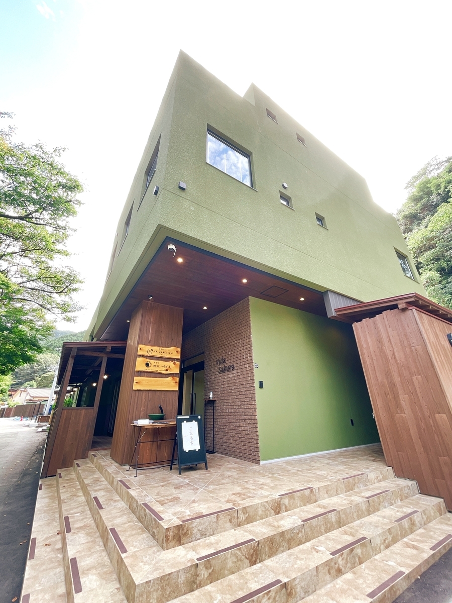 外観は元々「五十鈴(いすず)旅館」を改修リノベした建物です!緑に溶け込むような深緑色の壁とモダンなデザインがオシャレにも感じる〜店内はカウンター席とテーブル席にテラス席(ペット可能)もありカジュアルで開放的な雰囲気!えっ店内の隣になんと「土俵」があるのは??調べると昔、毎年九州場所の際に「湊部屋」の力士が泊っていたらしく、建物を改修しても「湊部屋」の力士が稽古ができるようにと土俵を作ったそうです。