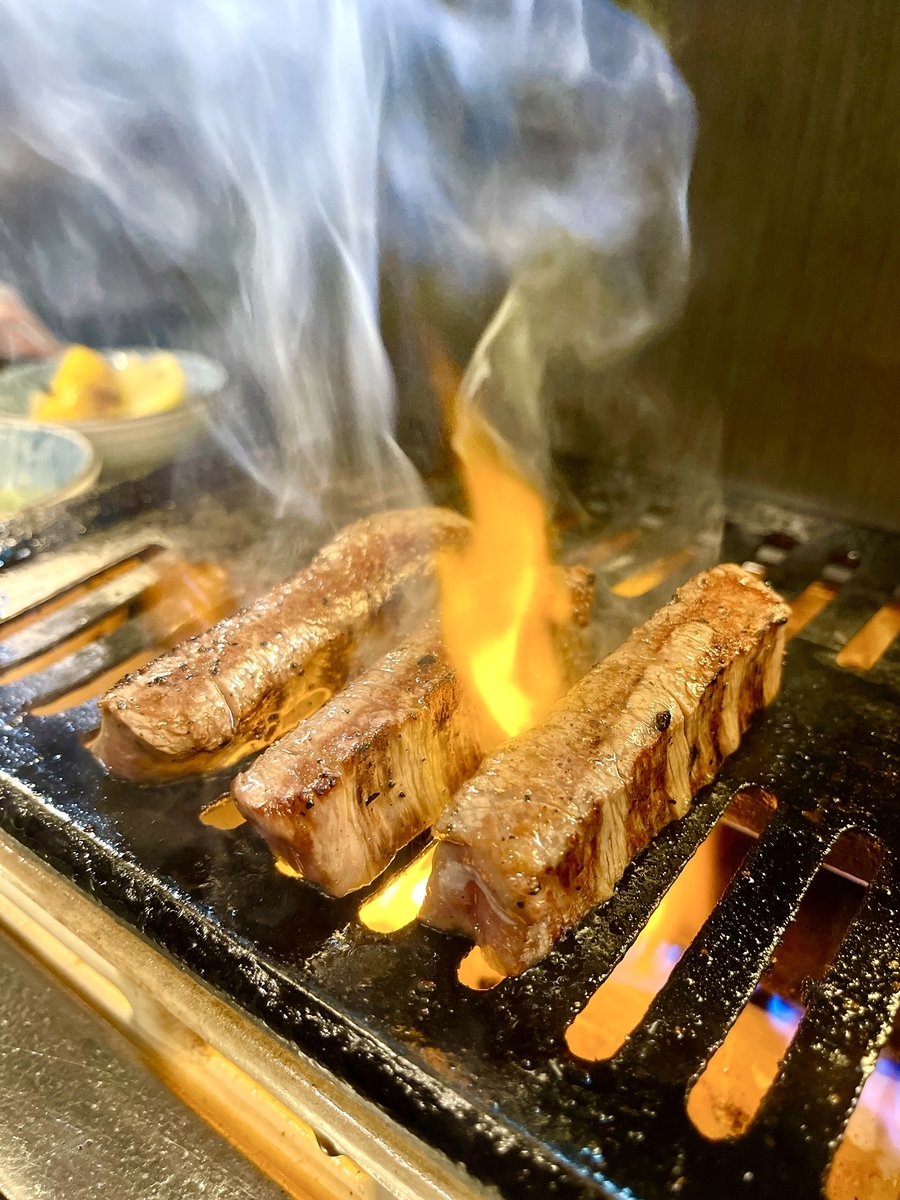 先ずは「牛タンネギ」に「極上サガリ」を焼きすぎないレア感を残してレモン塩で食す!美味い最高だわ〜次に見た目も美しい「シャトーブリアン」は食べる前から間違いない断面のサシに惚れ惚れ♡美味いに決まってる!究極のブリちゃんは外側をカリッと焼き!レモン塩や「ほりにし/赤」で食すとヤバイぞ!飛ぶぞ!この旨さは〜ブリちゃんの旨味がジュワーっと口の中いっぱいに広がる☆幸せ!生きていてよかった!最後の晩餐クラスです。