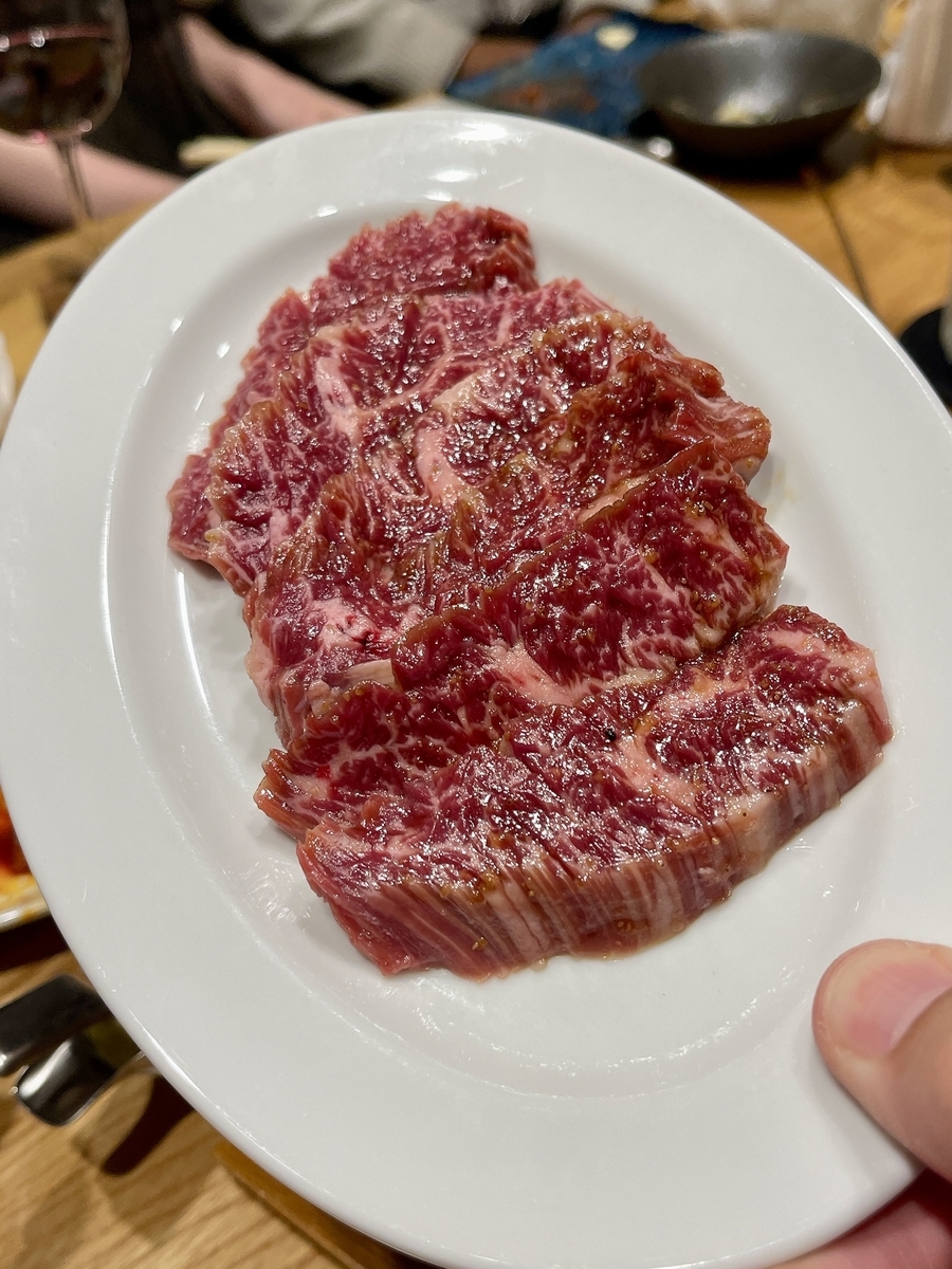 焼肉は「骨付きカルビ」と「牛タン」「サガリ」「ホルモン」でオススメは漬け込み熟成された「骨付きカルビ」で本場の味が楽しめます!サンチュや胡麻の葉に巻きキムチやニンニク&青唐辛子を入れて一緒に食すのが韓流式で最高に美味しい〜オススメな韓国焼肉店!たまに立ち寄りたいお店です。