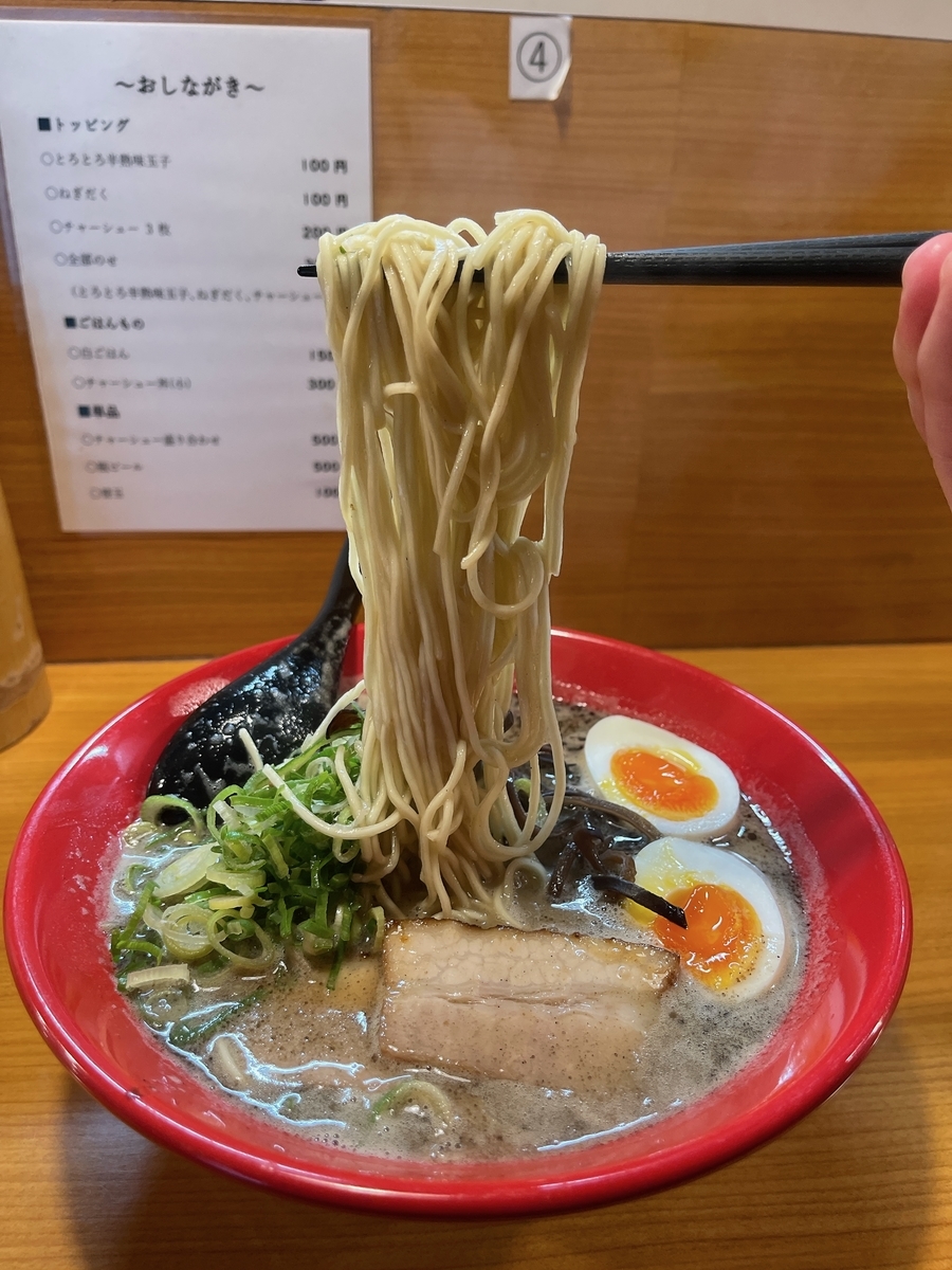 黒マー油も前回よりはアップデートされ、旨味エグ味コク増して良い塩梅にスープに馴染んでました〜麺は自家製細麺!トッピングは「炙りチャーシュー」「煮卵」「キクラゲ」「青ネギ」です。