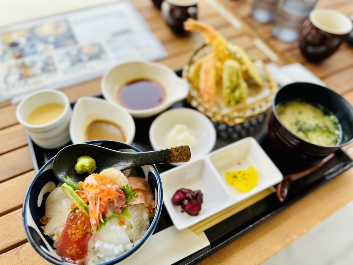 「ビーチマウンテン定食」には、海鮮丼(小)、味噌汁、茶碗蒸し、天ぷら7種盛り、小鉢が付いたボリューム満点で美味しかった!「甘エビ丼定食」は女性に人気なのがわかる納得の美味しさでした!最後に「サーモン&いくら丼」は老若男女に支持されるシンプルながら旨味濃厚なサーモンにたっぷりイクラに炊き立ての美味しいご飯がコラボされて最高でした。
