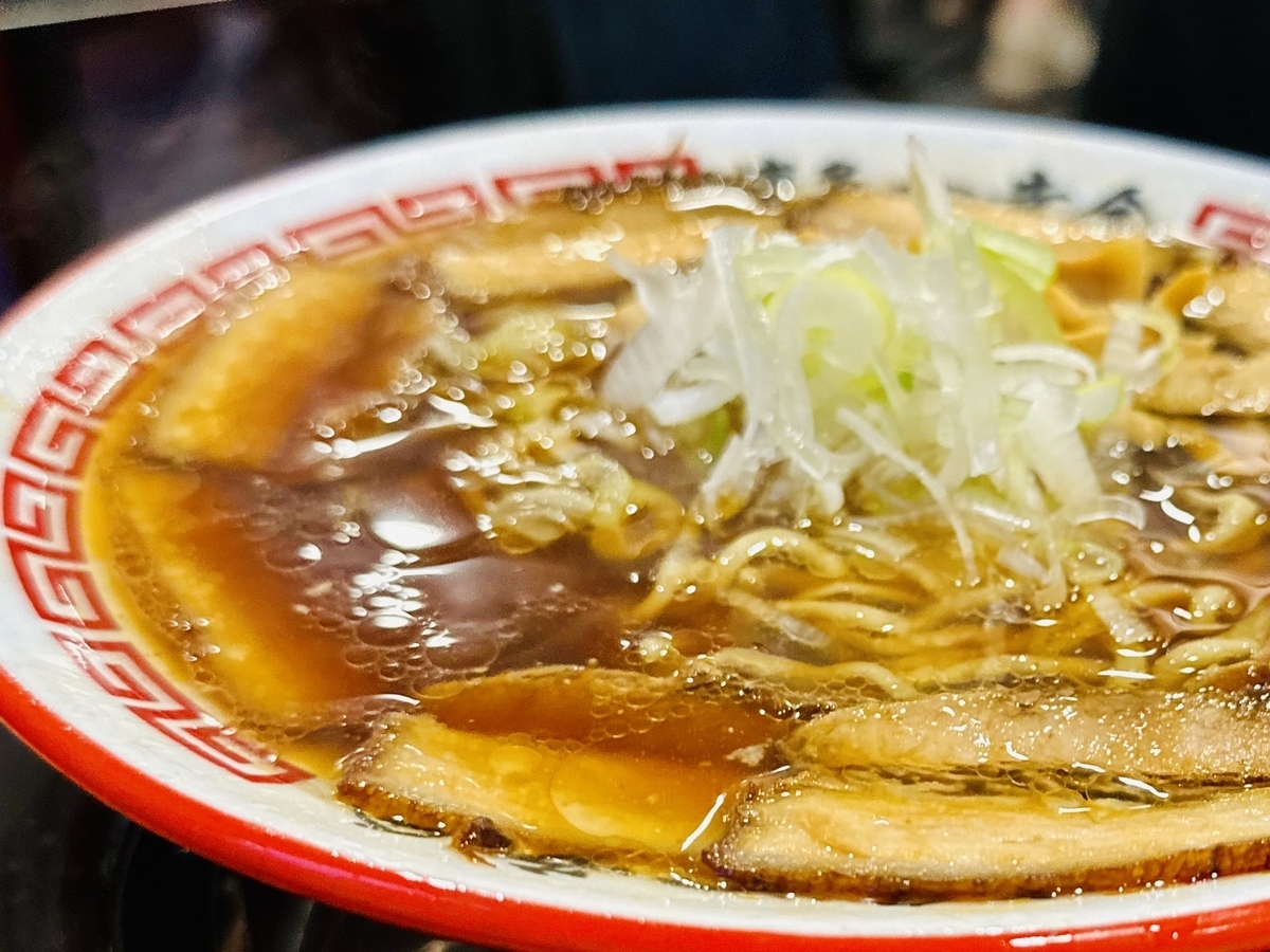 「肉盛り中華そば」のスープから〜こっちも変わらず美味しい!鶏ガラ、魚介出汁の奥深い旨味がしっかりとグリップしている!そこに濃い目の「醤油ダレ」が加わり「コク旨い」醤油ラーメンになっています!「白河ラーメン/福島」に負けない美味しさがあります。
