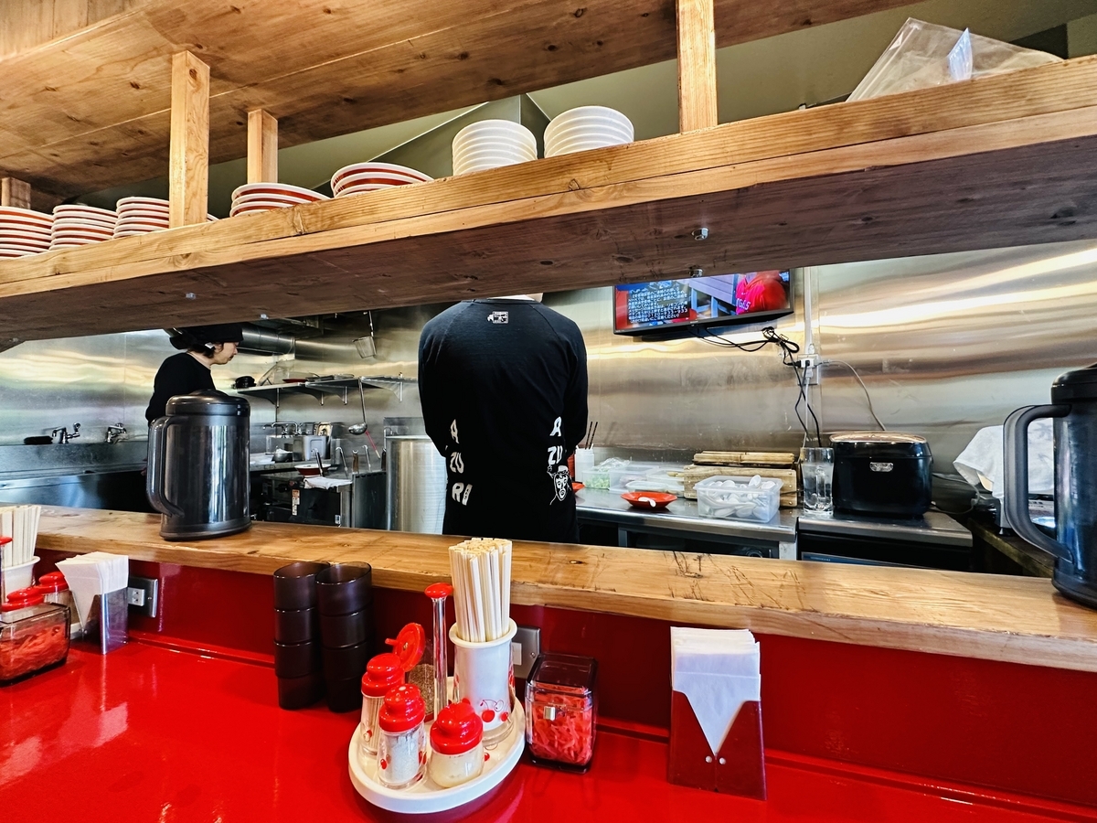 外観は雑居ビル1階!焼鳥りりあ2階に上がる際のエントランスエリアにカウンター席のみの狭小店があります!着席すると「麺の硬さ?」をスタッフから尋ねられます「普通」の硬さでお願いしました!外観に漂う豚骨アロマ臭はなかなか期待できそうです〜好きな人からしたら豚骨アロマ臭は「ラーメン食べたい」と思わせるけど、嫌いな人が前を通ると苦痛になるかもしれませんね(笑)