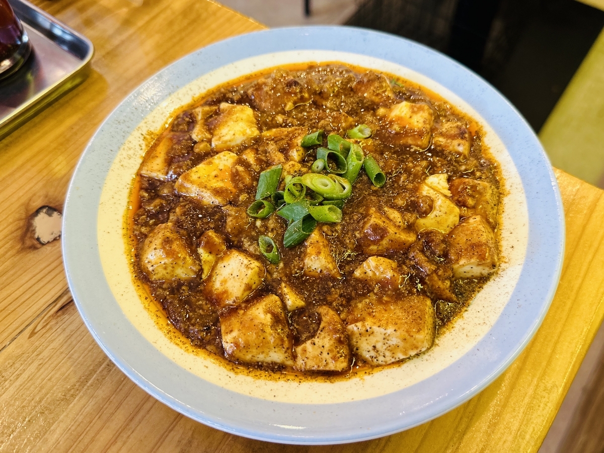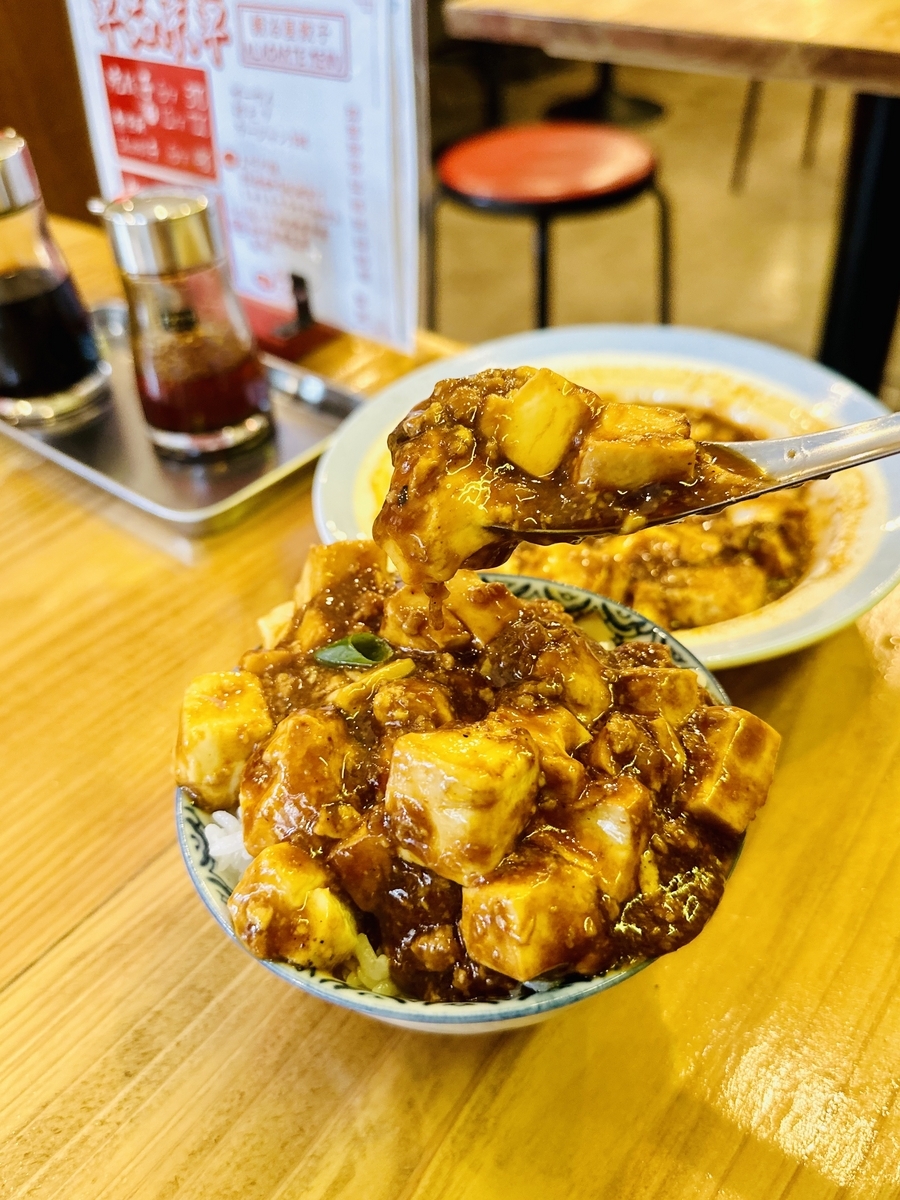 〆に名物「四川麻婆豆腐」と「白飯」をチョイス!「四川麻婆豆腐」は辛さ痺れだけでなく濃く旨い!ピリ辛スパイスが後引いて美味しい!そして「白飯」に麻婆豆腐をダイブさせ即席「麻婆豆腐丼」の完成!ご飯との相性は言う事ありませんオススメです!最高でした。