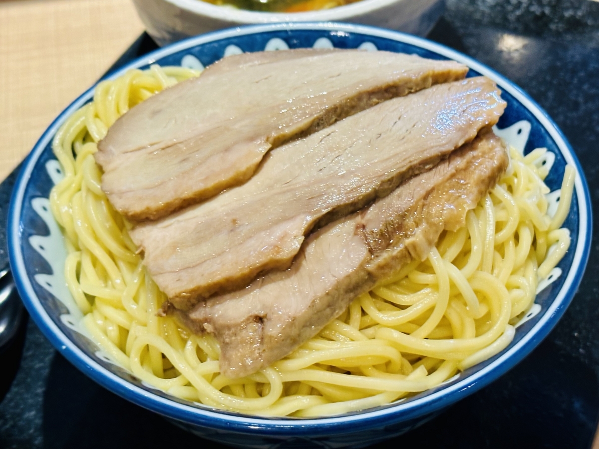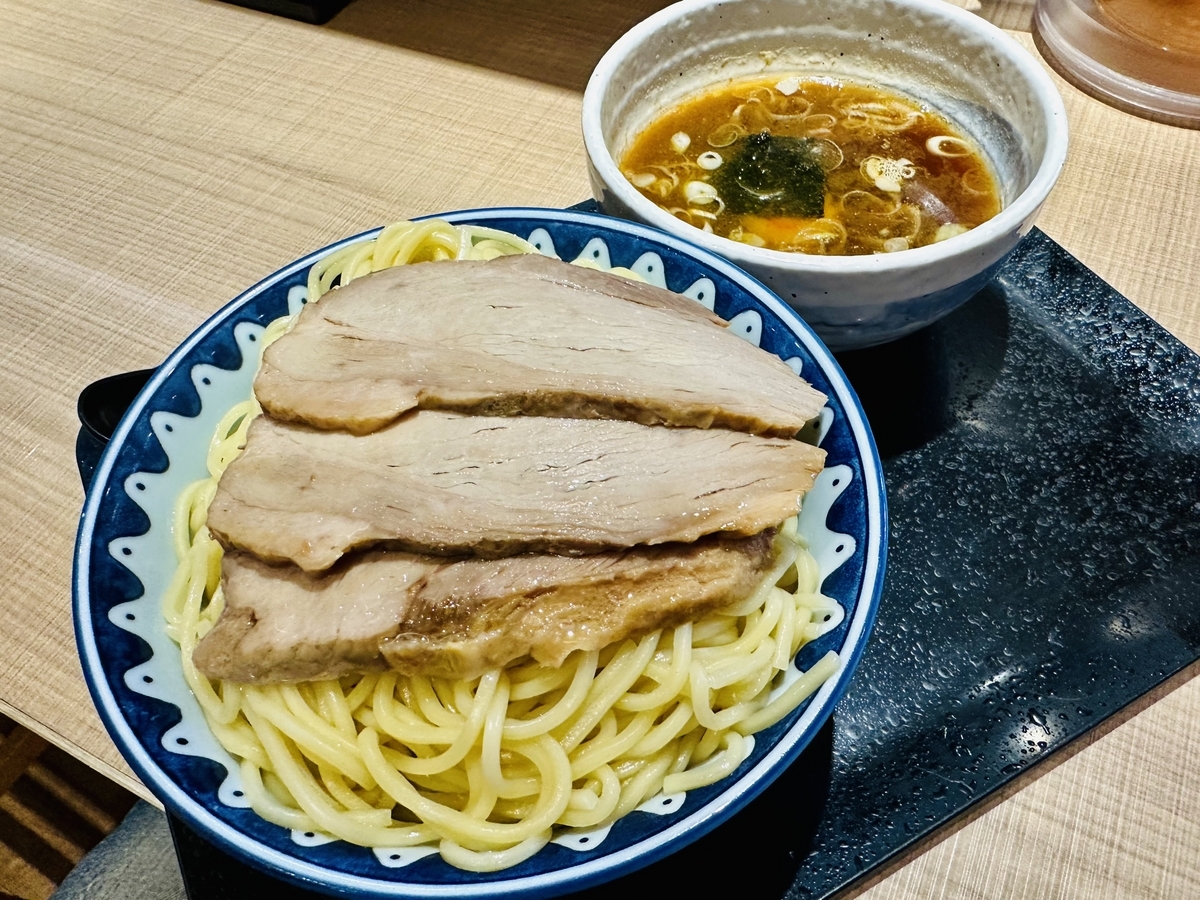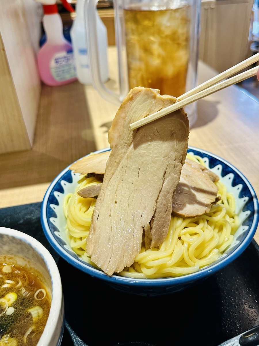 外観内観とカジュアル!入口券売機で食券を購入してスタッフの案内する席へ!頂いたのは「つけ麺大盛りチャーシュー」です。食券を渡す際に「あつもり」でお願いしてみました!あつもりとは、温かい麺で提供して頂けるサービス!通常は何も言わなければ冷たい麺で提供されます。