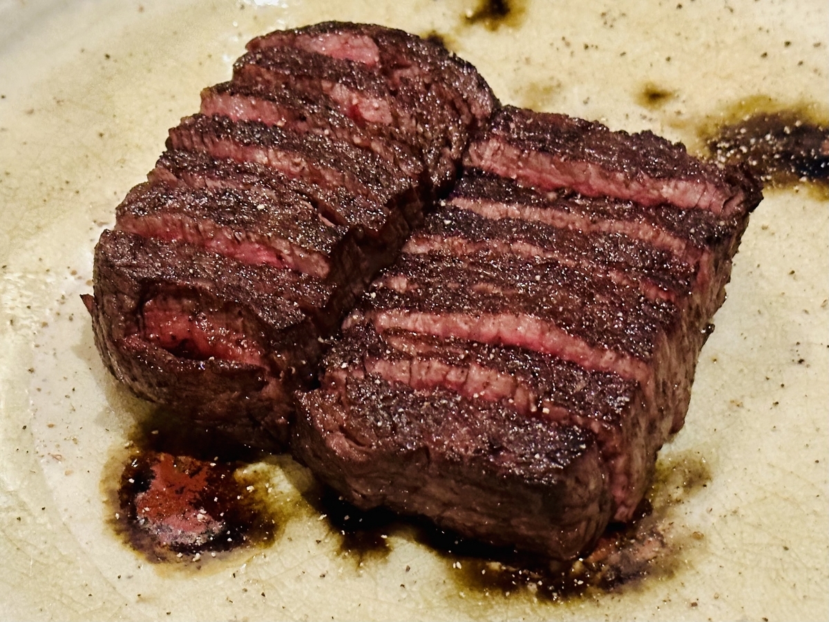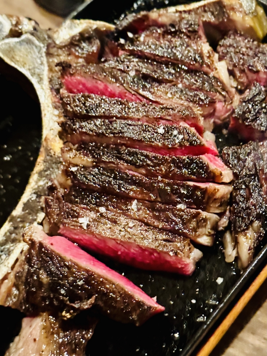 先ずは「熟成期間55日・Lボーン/910g」から〜お肉の味がしっかりとして美味しい!完璧な熟成度合いです☆続いて「熟成期間55日・リブアイ/930g」コチラも美味しい〜熟成されたお肉の旨味が濃厚!食感も柔らかいので、お肉好きな老若男女にオススメです〜今まで食したことないお肉の美味しさを堪能できるでしょう。