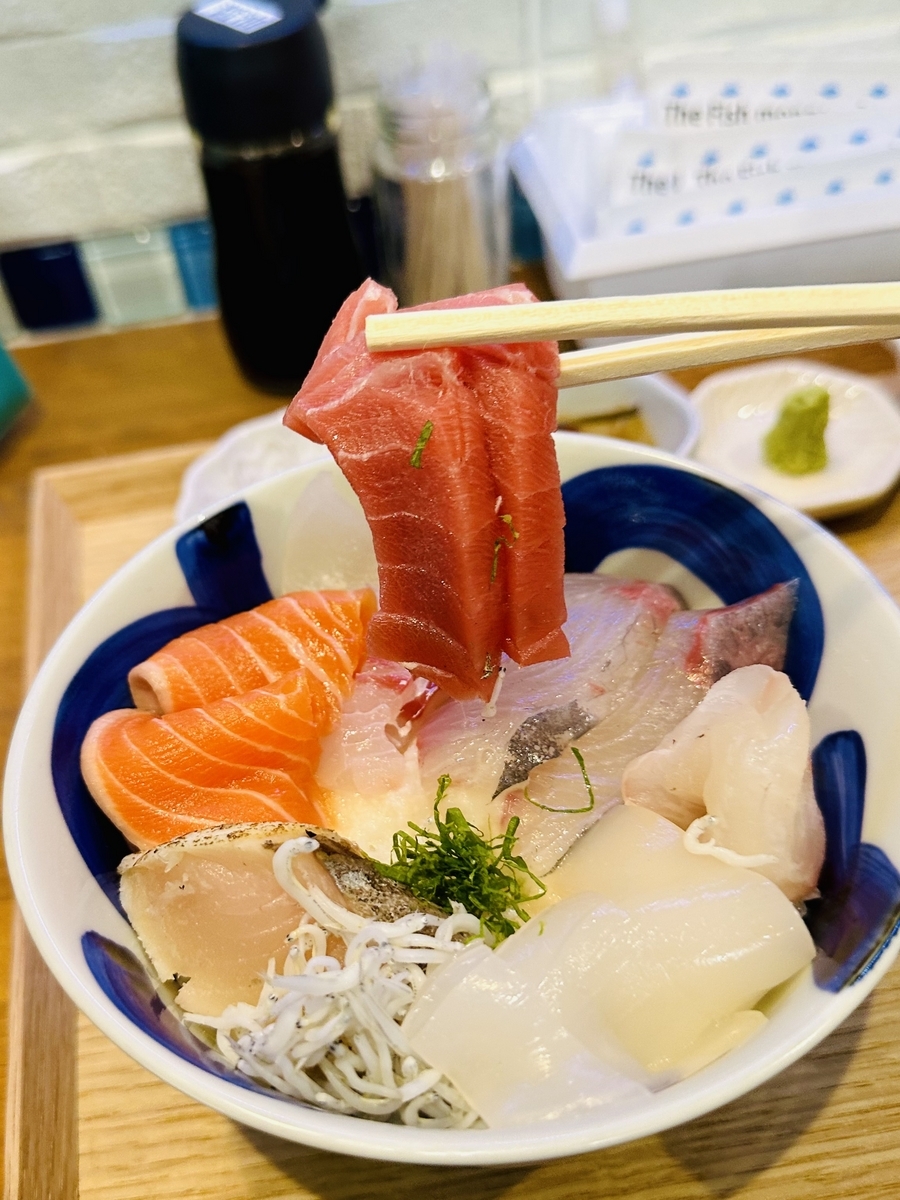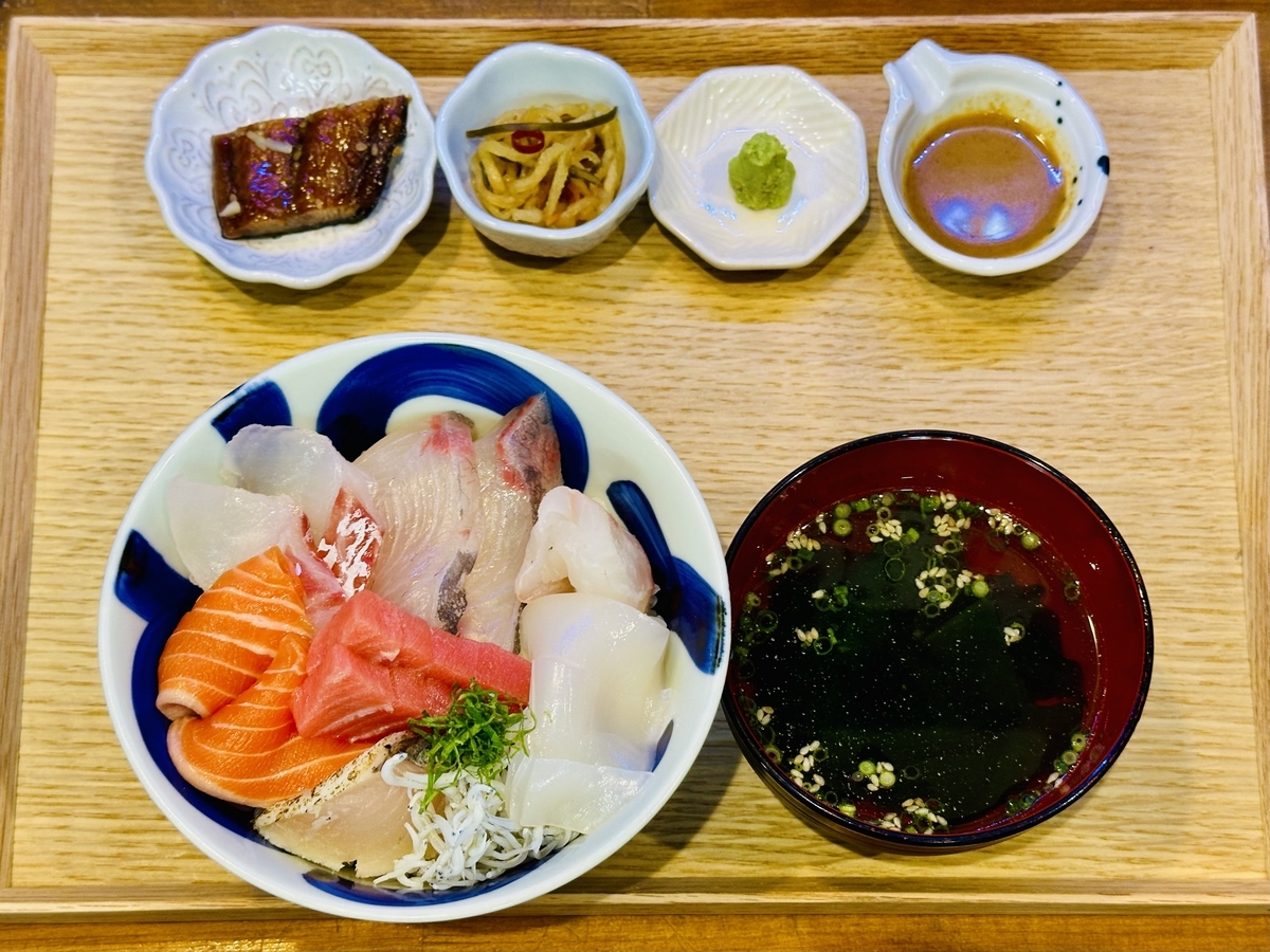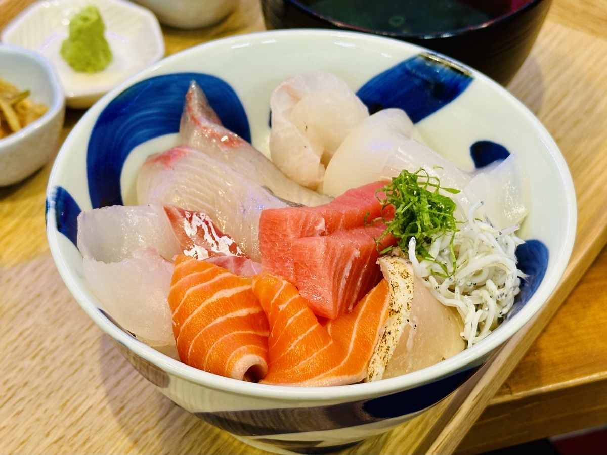 店内はカウンター席にテーブル席がありカジュアルな雰囲気は入りやすい!メニューは豊富で、人気の海鮮丼やマグロ丼を始め、豪華海鮮丼など存分に魚介類を満喫できそうです!今回頂いたのは「海鮮丼」です。