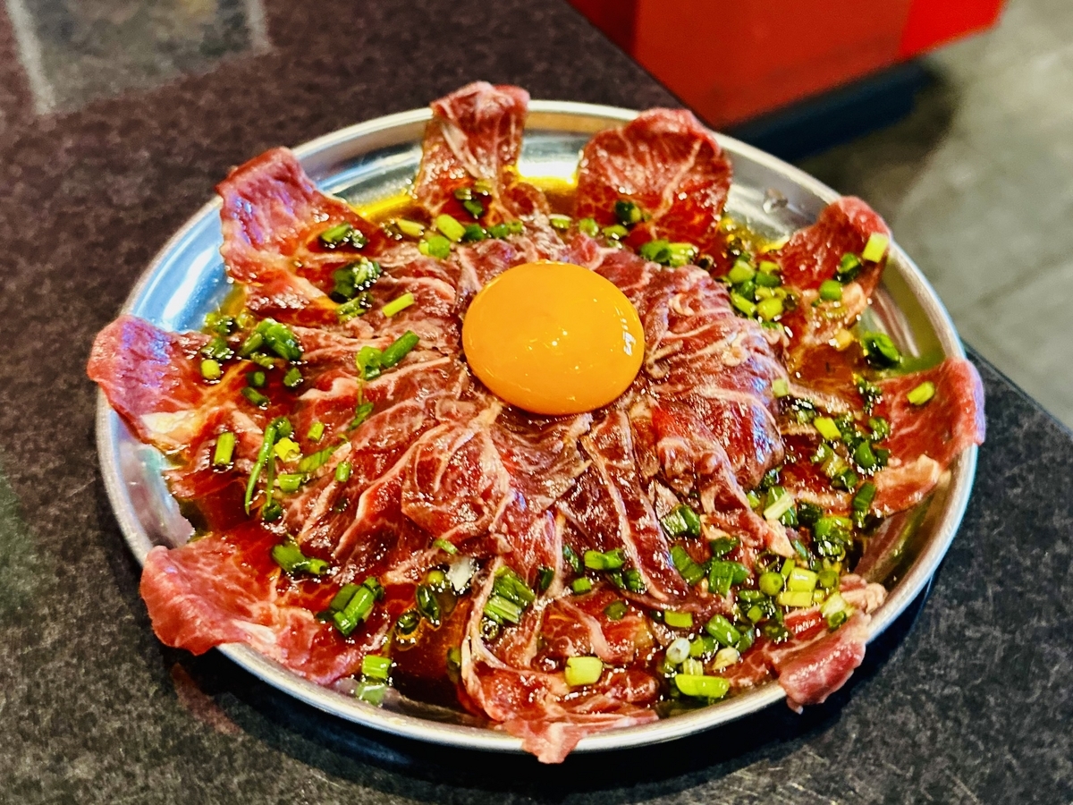 先ずは、キンキンに冷えた「生ビール」で乾杯!アテに最適と「ツラミの炙りユッケ」をチョイス☆これが大当たり!タレの甘さと肉の旨みがナイスマリアージュで美味しかった!焼肉のスタートは「ねぎタン」から〜炭火の火力が強いのでササッと炙る程度で十分!タン好きを虜にする美味しさがあります♡ねぎタレが甘いので、好みで「レモン」を絞ったり、塩胡椒をするといい塩梅でした。