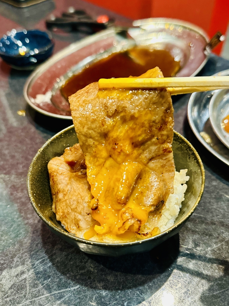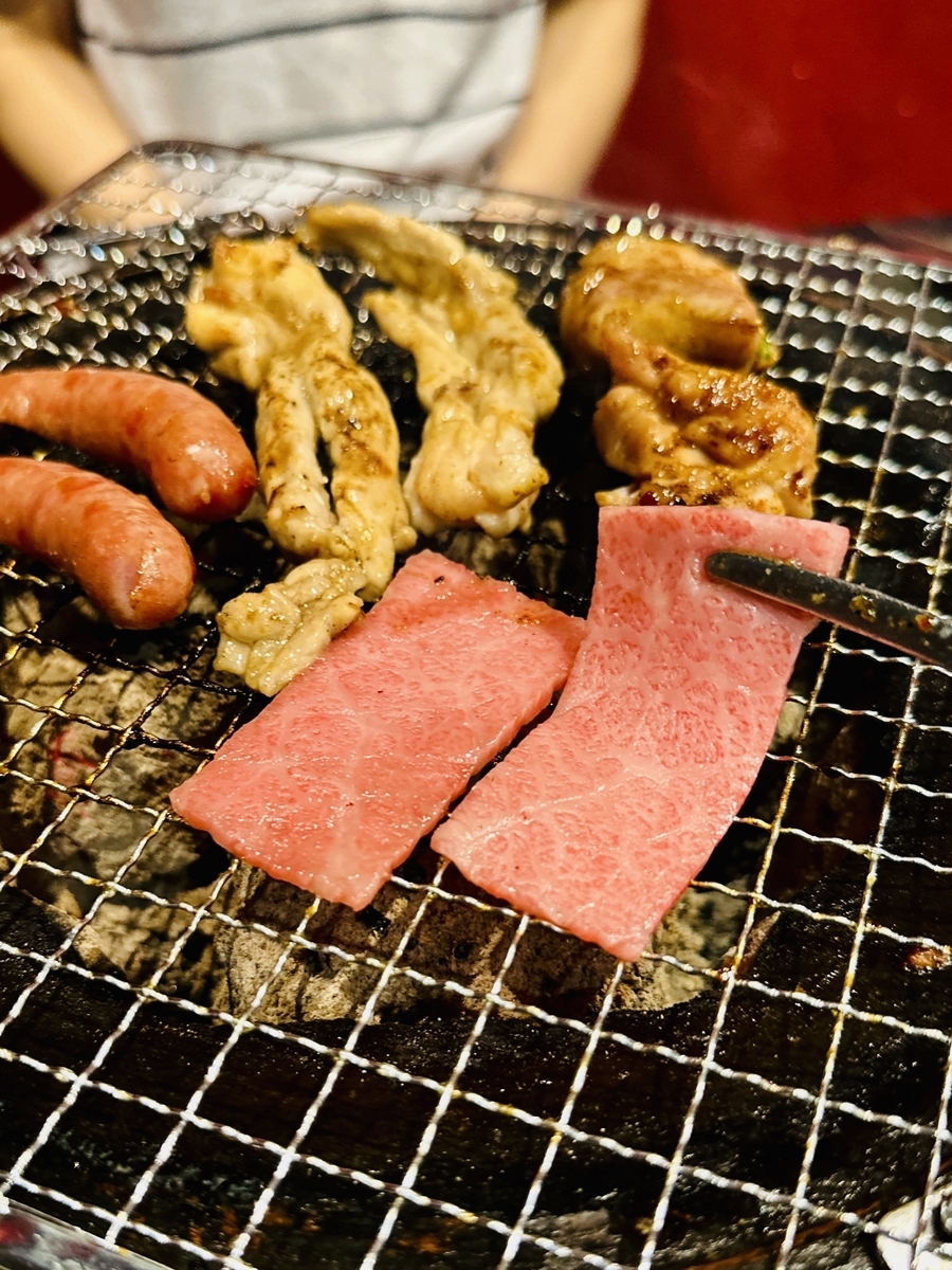 そして、スタッフオススメの「いろんな部位を少しずつ1枚売り」サービスは素晴らしい!通常であれば1人前/4〜5切れ程あると思いますが、好きな部位だけ1枚から注文出来るとは!色んな部位を少しづつ食べてみたいお客様のわがままに応えるサービスは、女性や高齢者などの肉好きには最適でしょう〜選べる部位は、佐賀牛「上カルビ」「赤身カルビ」に、和牛「上ハラミ」「ハラミ」「みすじ」、鶏豚は「とりもも」「せせり」「豚バラ」「ウィンナー」、ホルモンは「上ホルモン」「ホルモン」「ミノ」「おっぱい」などです。