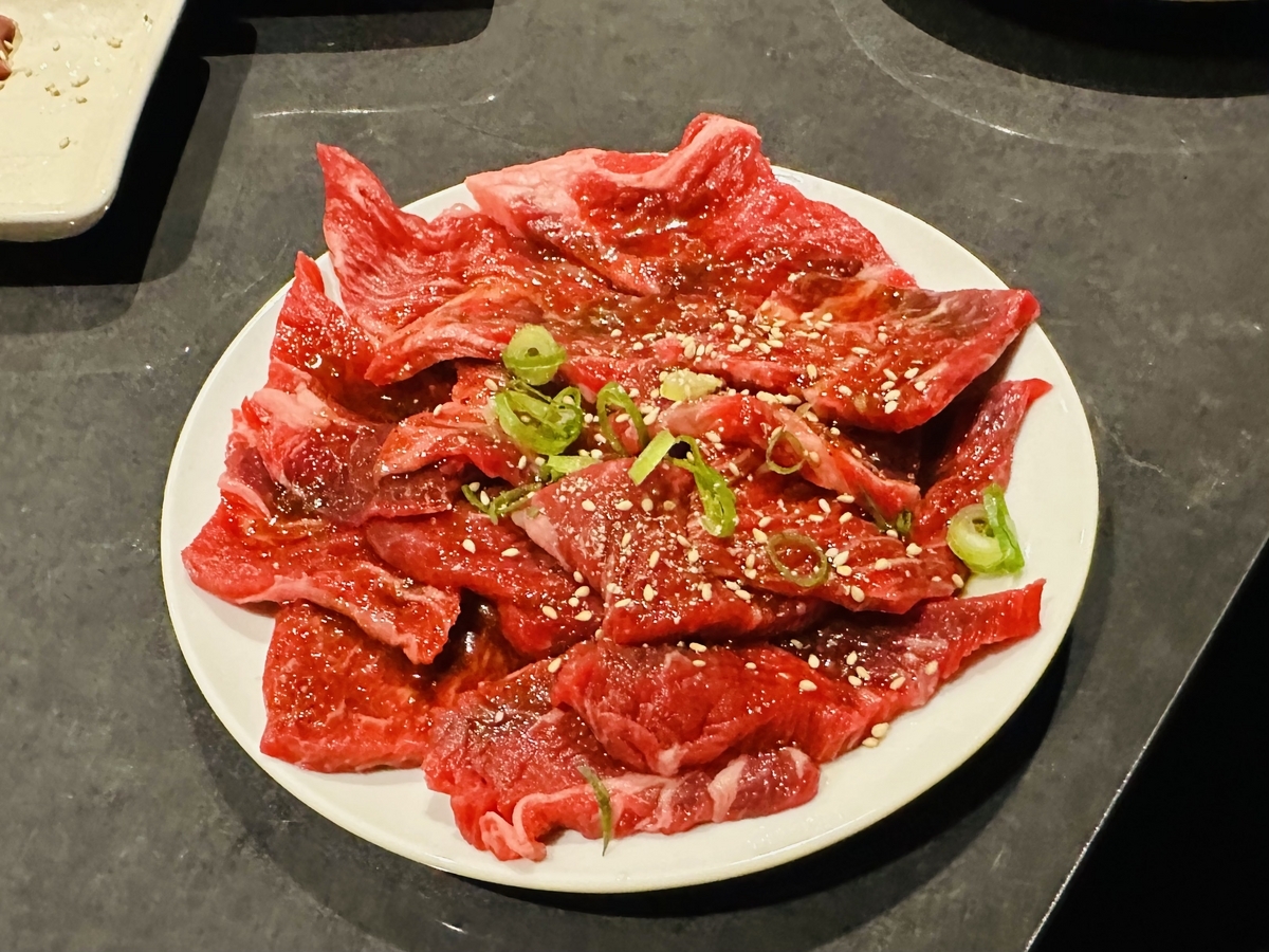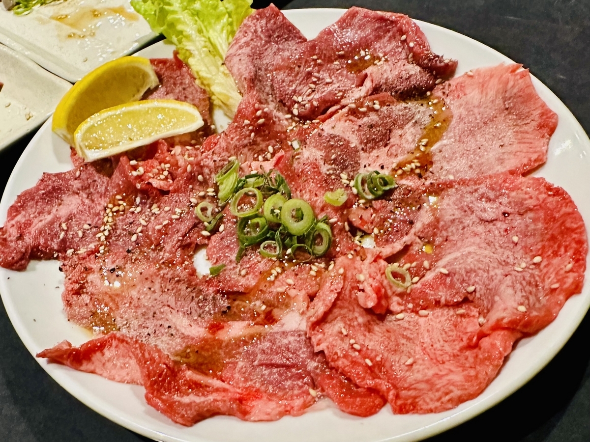 頂いたのは「センマイ刺し」「ハツ刺し」「塩タン」「ハラミ」「特選ロース」「特選カルビ」「上ホルモン」「キムチ」「ナムル」「チシャ」などです!先ずは、新鮮な「センマイ刺し」「ハツ刺し」から〜美味しい☆ビールやハイボールとのペアリングもいい感じ!そして誰もが好きな「塩タン」は期待を裏切らない美味しさがあります。