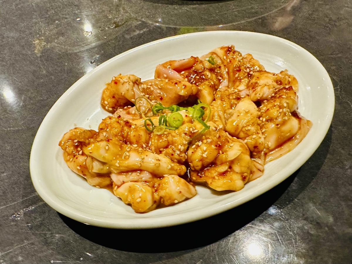 タレ焼きは「ハラミ」「特選ロース」「特選カルビ」と、どれも美味しいけど「ハラミ」は絶品でした♡やっぱりタレは最高やね☆「特選ロース」「特選カルビ」はいい塩梅でサシが入って美しい!そのままタレ漬けでも美味しいけど、チシャにキムチやナムルと一緒に包んで食すと美味しかった〜そして、ココの「上ホルモン」も忘れてはいけない!新鮮なのは当然だけど旨みが濃厚で美味しい〜お代わり必須だと思われます。