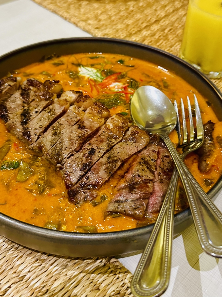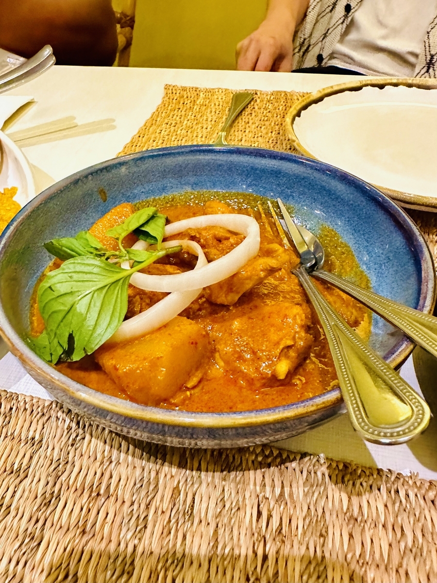 料理のメニューはとても豊富で、チェンマイ料理、イサーン料理、南タイ料理など、タイ全土の料理が揃っています!頂いたのは「マッサマンカレー/チキン」「グリーンカレー」「蟹のカレー」「ステーキカレー」などで、どれも濃くマロな美味しさで感動しました♡流石のミシュラン☆特に「マッサマンカレー」に「蟹のカレー」絶品でした〜ご飯は「白いご飯」と「黒っぽい雑穀米」のどちらかを選べます!私は両方「白/黒」と試しましたが、どちらもカレーにマッチして美味しかったです。
