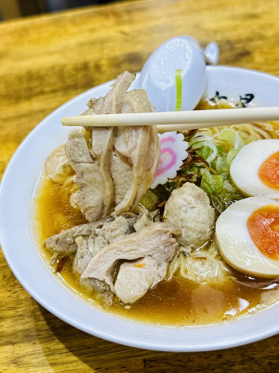 「麺」は低下水細麺で喉越し良し!トッピングは豊富☆鶏チャーシューに鶏団子も美味しい!鶏団子には軟骨がブレンドされコリコリ食感がいいアクセントでした。