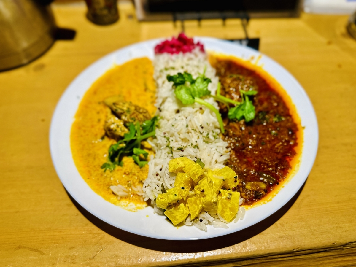 「ライス」はバスマティライス!パクチーにカレーリーフと本場仕込みのスパイスが効いてるカレーでした〜カレー好きは必食価値あり!ごちそうさまでした。