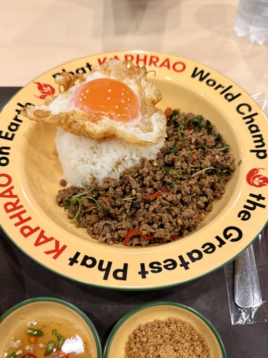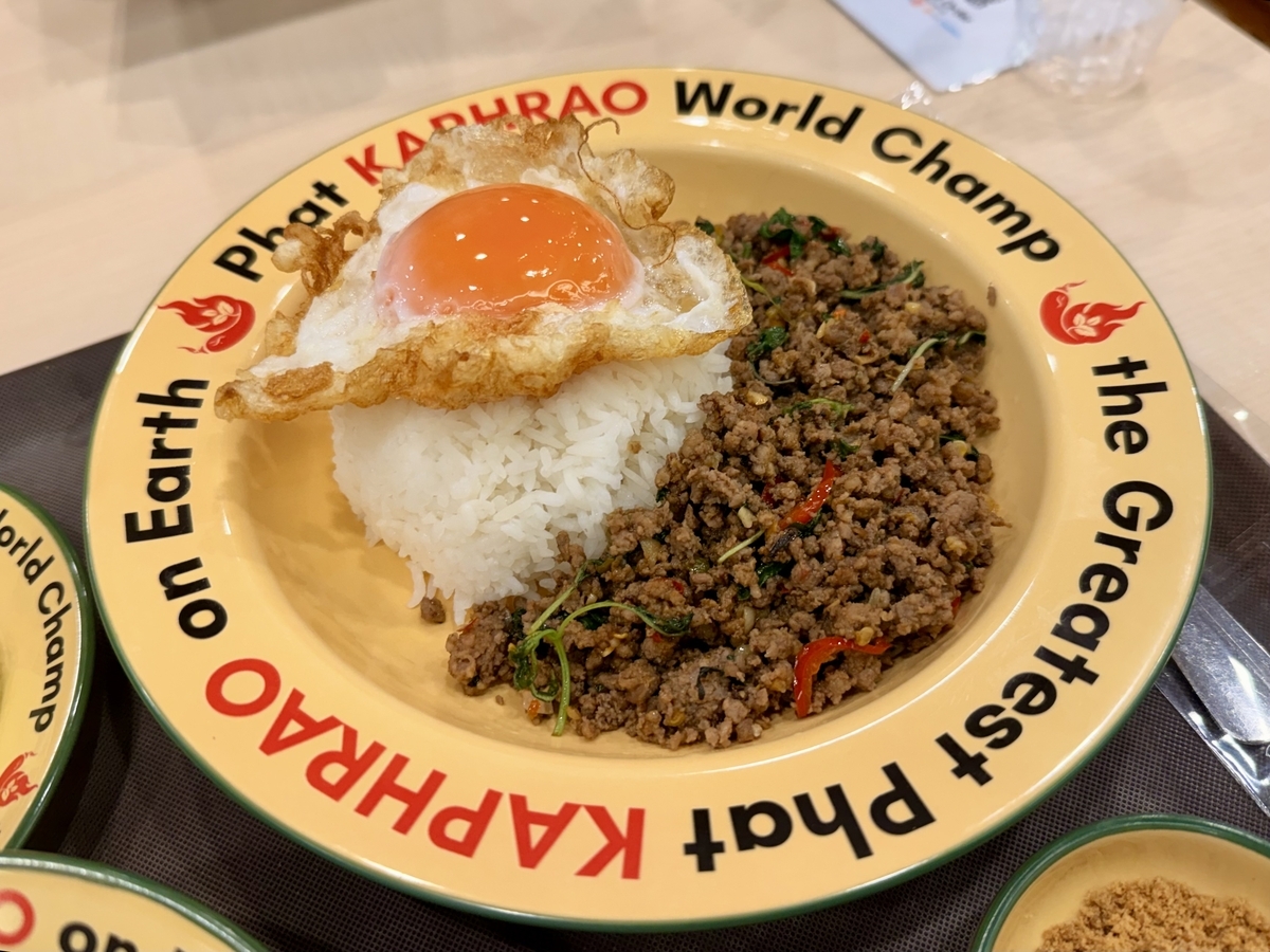 今日は、ずっと気になっていた超話題のレストランに行ってきました!その名も「Phat KAPHRAO World CHAMP」!タイの国民食であるガパオ(パッ・クラポー)の世界大会「ワールド・カプラオ・タイランド・グランプリ2023」の牛肉バジル炒め部門で優勝した、アウンシェフとアームシェフが手掛けるお店なんです!場所は、クイーン・シリキット・ナショナル・コンベンションセンターのLGフロアにあり!「世界チャンピオンのバジル炒めレストラン」を早速突撃してきました。