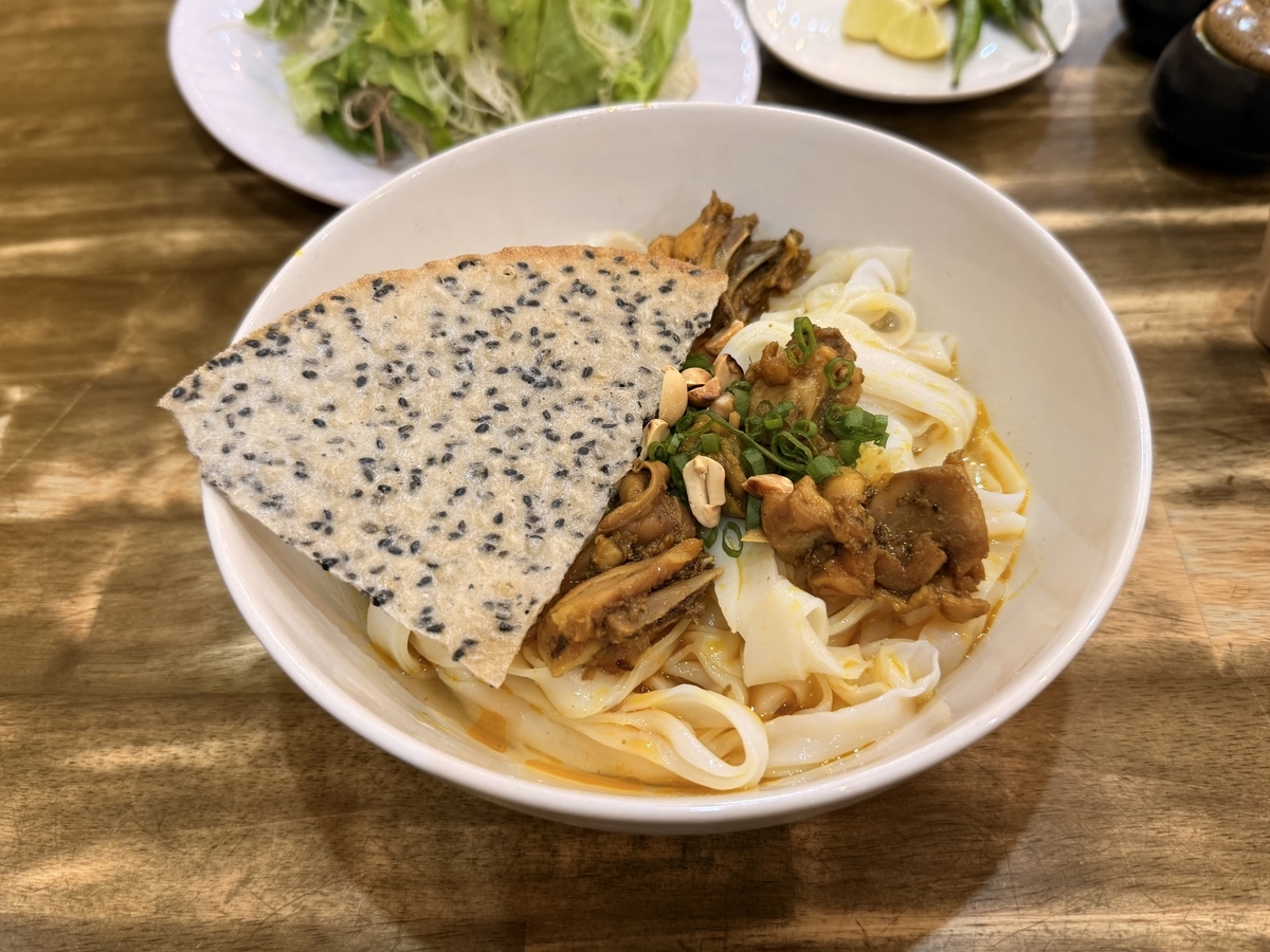 ここに来たら絶対に食べてほしいのが、中部ベトナムのソウルフード「ミークワン」!オーナーさんがクアンナム省出身ということもあって、本場の味が楽しめます。今回オーダーしたのは「CHICKEN QUANG NOODLES」と「SHRIMP, MEAT.EGG QUANG NOODLES」です。