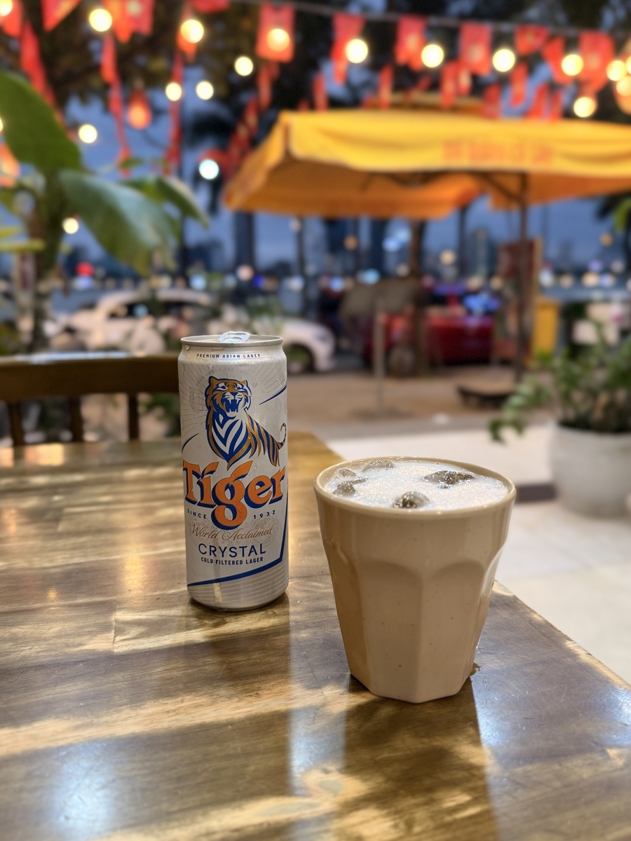 麺は、日本の「きしめん」みたいな極太平麺でツルツル&モチモチ!スープはあっさり優しめの味わいなので、自分好みにライムや辛味などをチョイスしてね!そして、たっぷりの香菜(パクチー)をトッピングすると、一気に本場ベトナム感が増していい塩梅です!ドリンクはタイガービールで乾杯!と、リーズナブルに満喫できました。