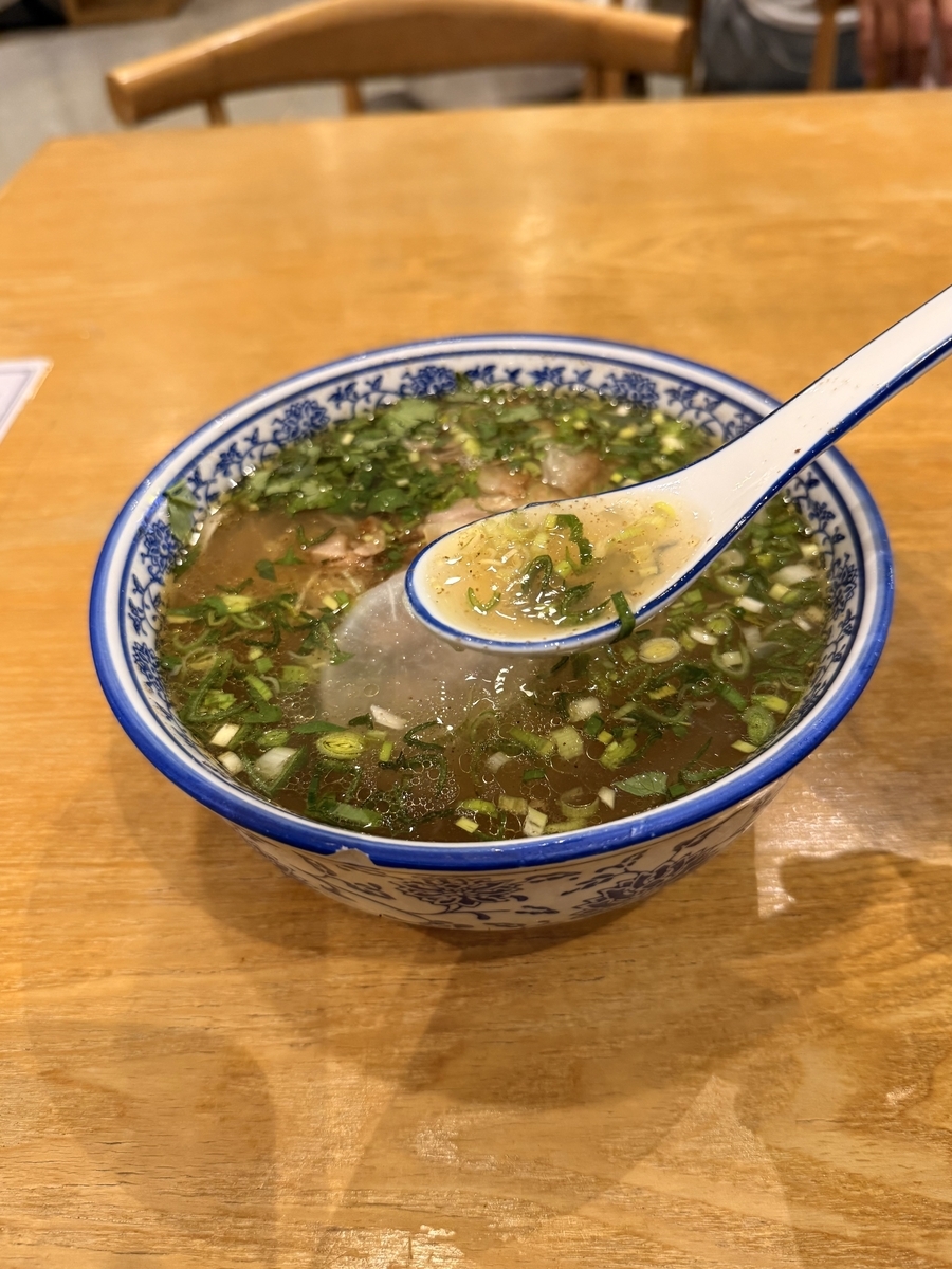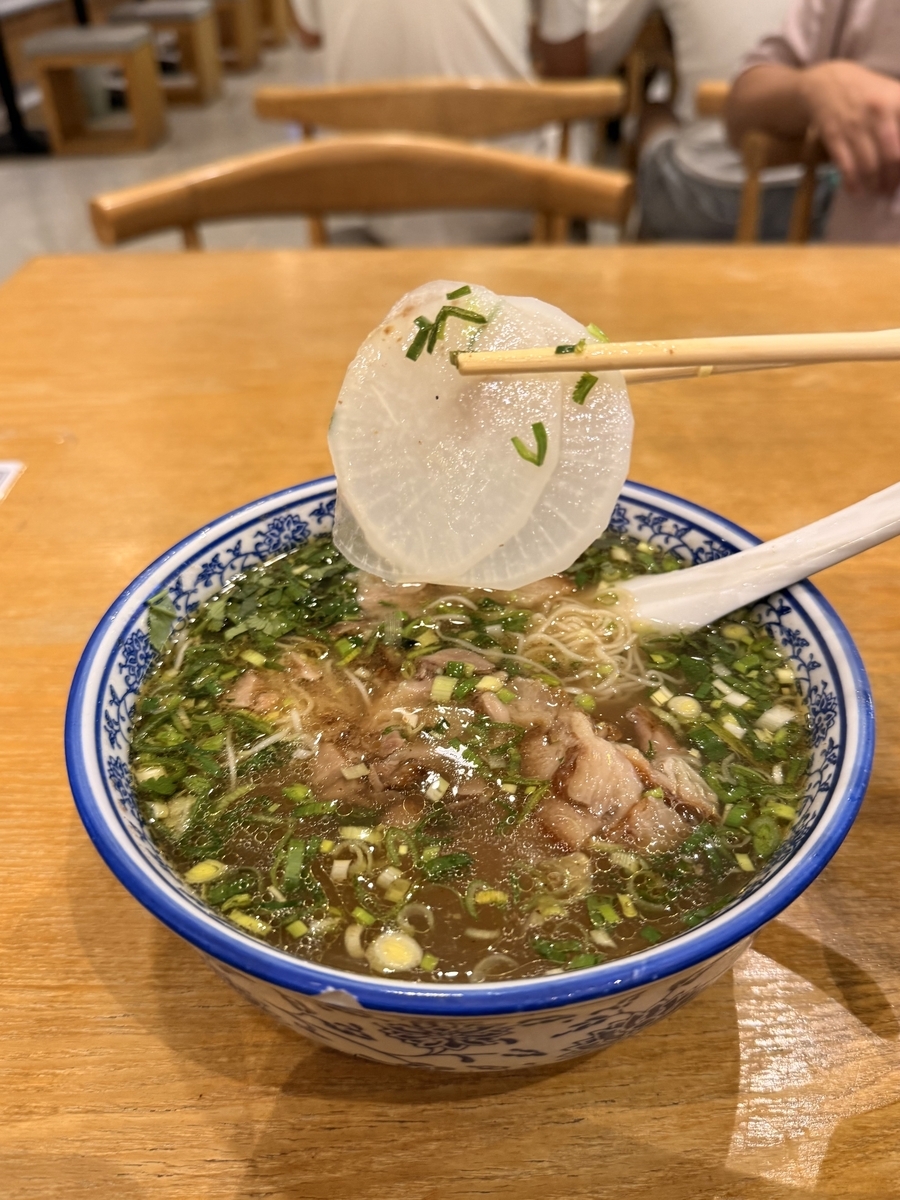 そもそも「蘭州牛肉麺」って?日本ではあまり聞き馴染みがないかもしれませんが、中国で「ラーメン」といえば、この蘭州拉麺(ランジョウラーメン)のこと!中国・蘭州発祥のこの麺料理は、牛肉をじっくり煮込んだ澄んだコンソメスープ(清炖)が特徴で、醤油を使わず、塩やハーブ、そして大根の甘みで味付けされた、とっても優しい味わいなんです。